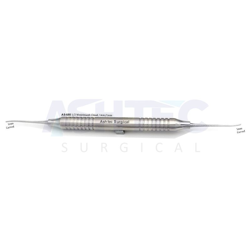 The 1/2 Wedelstaedt Chisel (1mm/1mm) is a precision restorative instrument designed for fine cavity preparation, enamel planing, and refinement of tooth walls. Its narrow 1mm double-ended blades provide excellent control in confined areas, making it ideal for delicate operative procedures where accuracy is critical.