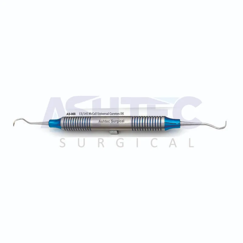 The 13/14 McCall Universal Curettes, DE are precision dental instruments designed for effective scaling and root planing on both anterior and posterior teeth. Their rounded blades provide gentle yet thorough removal of plaque and calculus while minimizing tissue trauma.