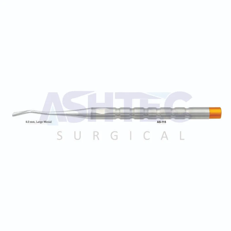 The Large Mesial Curette is a precision periodontal instrument designed for the effective scaling, root planing, and debridement of mesial tooth surfaces. Its 4.0 mm working end provides enhanced access and coverage for large tooth surfaces, ensuring thorough removal of calculus and soft tissue deposits while minimizing trauma to surrounding structures.