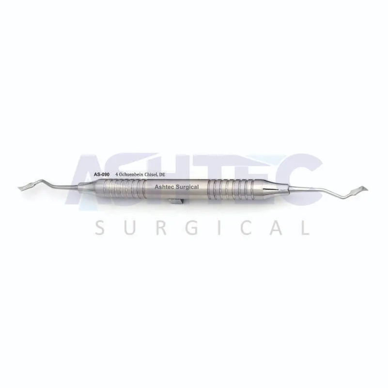 The 4 Ochsenbein Chisel, DE is a precision dental instrument designed for controlled removal and shaping of bone and hard tissue during periodontal and oral surgical procedures. Its sharp, angled blade provides precise access to targeted areas, allowing effective manipulation while minimizing trauma to surrounding tissues.