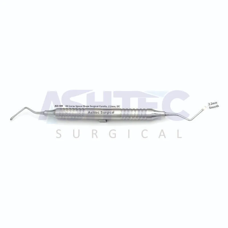 The Lucas Surgical Curette is a specialized dental instrument used for curettage, debridement, and removal of cysts or inflamed soft tissue during periodontal and oral surgical procedures. Its spoon-shaped, double-ended (DE) 2.2 mm working ends allow access to very narrow or confined areas, ensuring precise tissue removal while minimizing trauma to surrounding structures.
