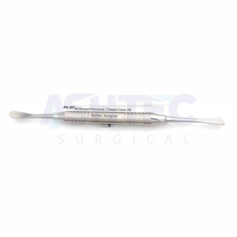 The 9H Howard Periosteal Elevator, DE is a specialized periodontal instrument designed for the atraumatic elevation and reflection of gingival and mucoperiosteal flaps. Featuring a double-ended (DE) design, it is equipped with a 7.5mm blade on one end and a 6.5mm blade on the other, providing versatility for working in both broader and more confined surgical areas.