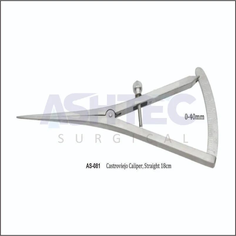 The Castroviejo Caliper, Straight 18cm is a precision dental and surgical instrument designed for accurate measurement and manipulation of dental materials, implants, and prosthetic components. Its straight design provides clear visibility and precise readings, making it ideal for delicate procedures in both clinical and laboratory settings.