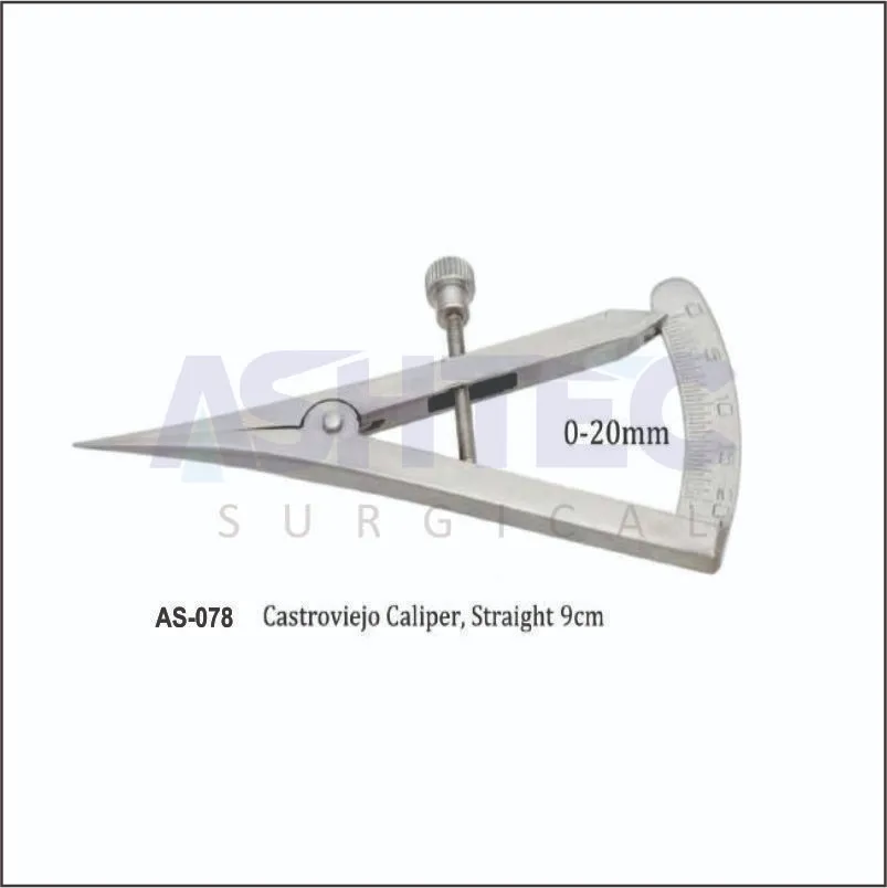 The Castroviejo Caliper, Straight 9cm is a precision dental and surgical instrument designed for accurate measurement and manipulation of dental materials, implants, and prosthetic components. Its straight design allows for precise readings and consistent results during delicate procedures.