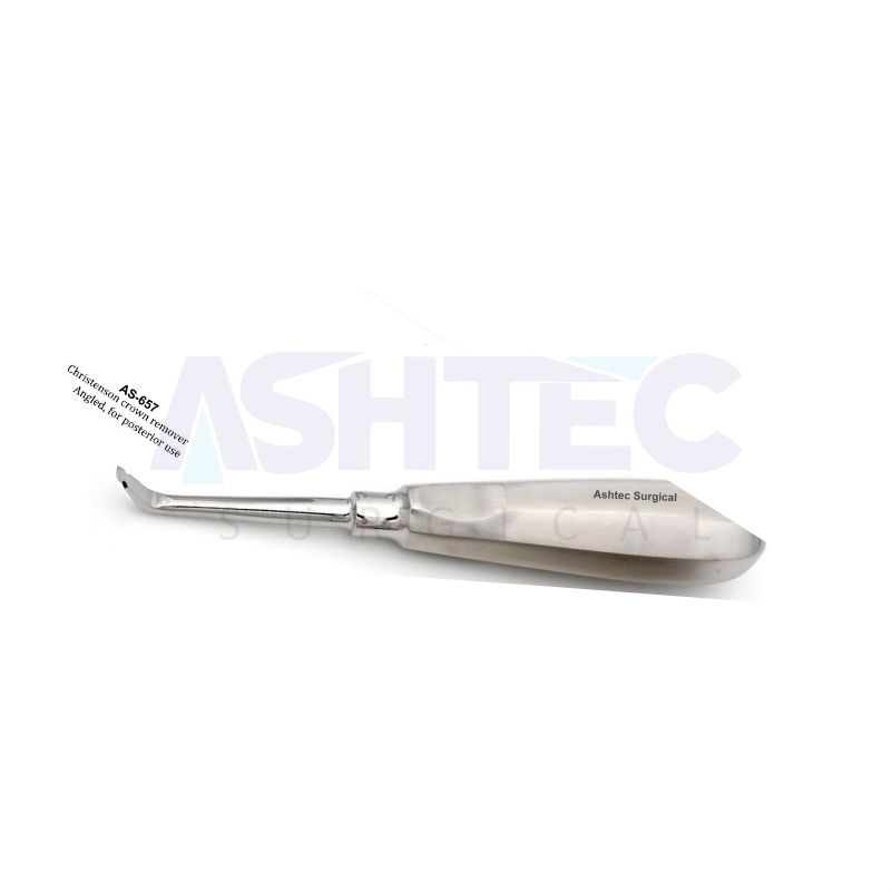 Christenson Crown Remover, Angled – Posterior Use is a specialized dental instrument designed for the safe and efficient removal of crowns and bridges in the posterior region. Its angled working tip provides excellent access to hard-to-reach posterior teeth, ensuring controlled leverage and minimal trauma to surrounding tissues.