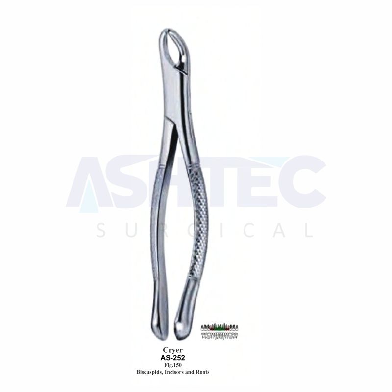 The Cryer Bicuspid, Incisor, and Root Forceps are versatile instruments designed for the extraction of premolars (bicuspids), anterior incisors, and residual roots with precision and control. Featuring EF (end-cutting) serrated beaks, they provide a firm, non-slip grip on both single-rooted teeth and delicate root fragments, ensuring stability during extractions.