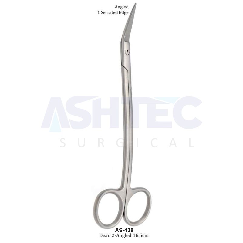 The Dean Scissors are specialized surgical scissors designed for cutting sutures and dissecting tissue in confined or hard-to-reach areas. This double-angled 16.5cm model provides superior access and visibility, making it especially useful in oral, maxillofacial, and general surgical procedures.