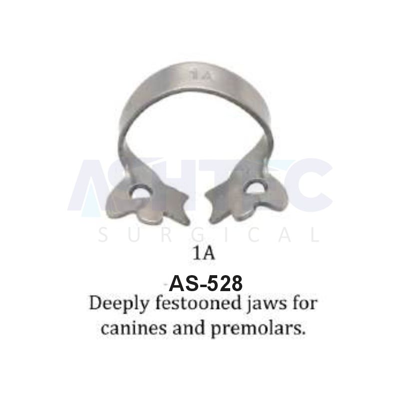 The festooned jaw design is optimized for teeth with more pronounced anatomical features, making it ideal for use on canines and premolars that may be difficult to isolate with standard clamps. Manufactured from premium surgical-grade stainless steel, Clamp 1A is durable, corrosion-resistant, and fully autoclavable for repeated, safe use.