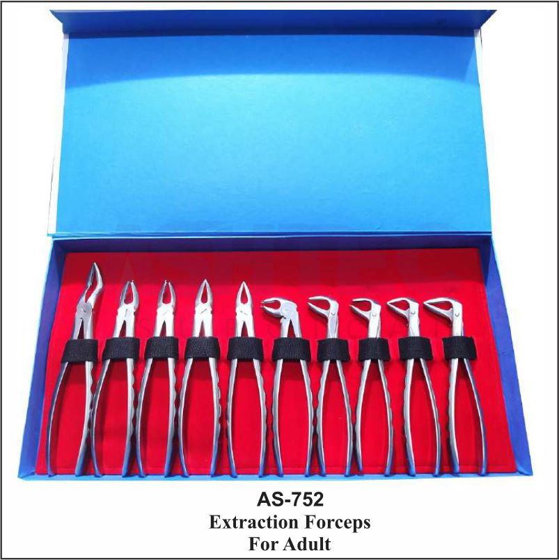 Extraction Forceps for Adults are specialized dental instruments designed for the safe and efficient removal of permanent teeth. Featuring anatomically shaped beaks that conform to various tooth morphologies, these forceps provide a firm grip and optimal leverage, ensuring precise extractions with minimal trauma to surrounding bone and soft tissues.
