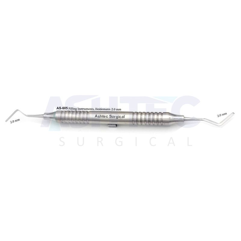 The Filling Instrument, Heidemann 2.0 mm, is a precision dental tool designed for the placement, shaping, and contouring of restorative materials. Its dual-ended 2.0 mm paddle-shaped tips allow smooth manipulation of composites, amalgam, and glass ionomer, ensuring accurate adaptation to cavity walls and margins.
