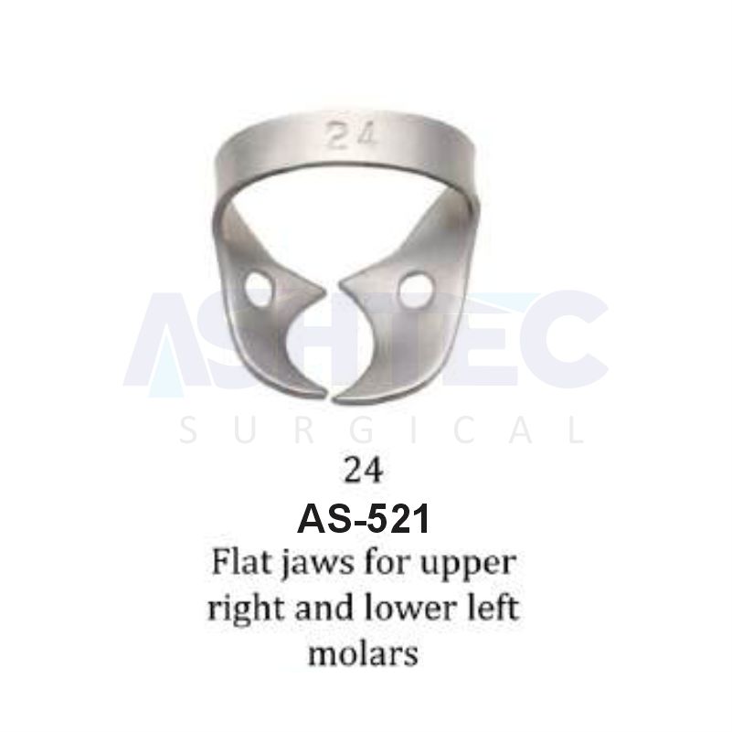 Its design provides excellent visibility and access to the operative field, making it ideal for molars that require consistent rubber dam placement. Constructed from premium surgical-grade stainless steel, Clamp 24 offers durability, corrosion resistance, and is fully sterilizable for safe, repeated use.