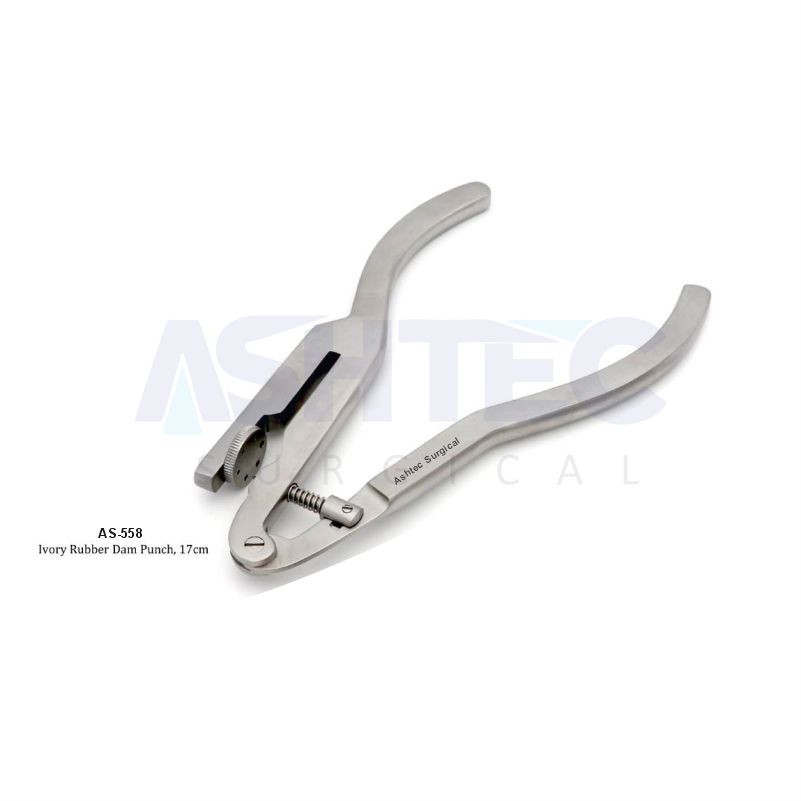 Ivory Rubber Dam Punch 17cm, designed for creating precise holes in rubber dams, ensuring accurate clamp placement and effective isolation during dental procedures.