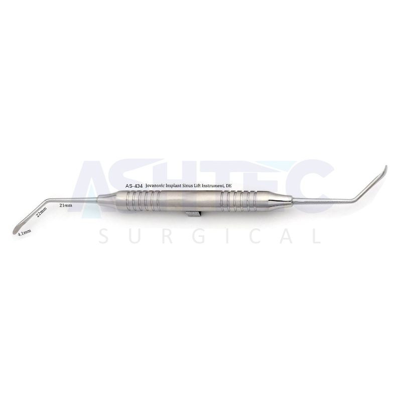 Its smooth, atraumatic ends allow surgeons to carefully separate and elevate the sinus membrane, creating the necessary space for bone graft placement and implant site preparation. The dual-ended design increases versatility and efficiency, making it suitable for different anatomical requirements within the sinus cavity.