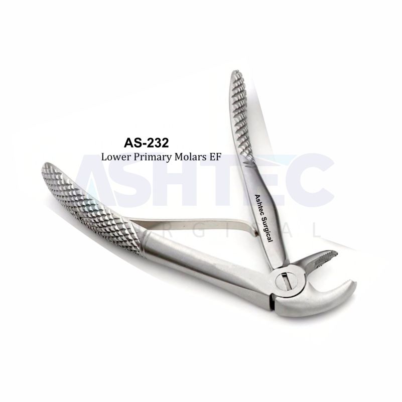 The Lower Primary Molar Forceps are specifically designed for the extraction of mandibular primary (deciduous) molars with precision and care. Featuring EF (end-cutting) serrated beaks, they provide a secure, non-slip grip on smaller tooth structures, ensuring stability and control during pediatric extractions.