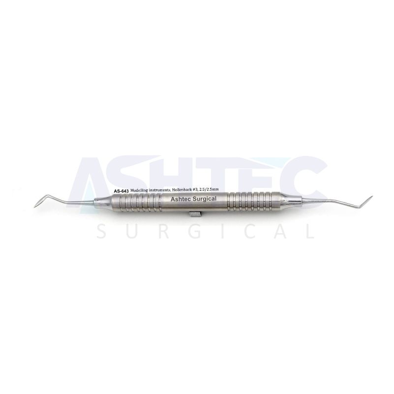 Modelling Instrument, Hollenback #3, 2.5/2.5 mm is a precision carving and contouring instrument widely used in restorative dentistry for shaping, refining, and adapting amalgam and composite restorations. Featuring double-ended pointed blades, each 2.5 mm wide, it provides exceptional control for carving occlusal anatomy, marginal ridges, and interproximal surfaces.