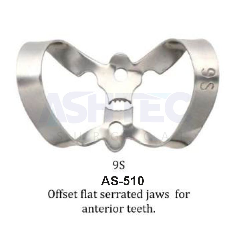 Offset flat serrated jaws ensure a firm grip and stable retention on anterior teeth, providing effective isolation and access during restorative procedures.