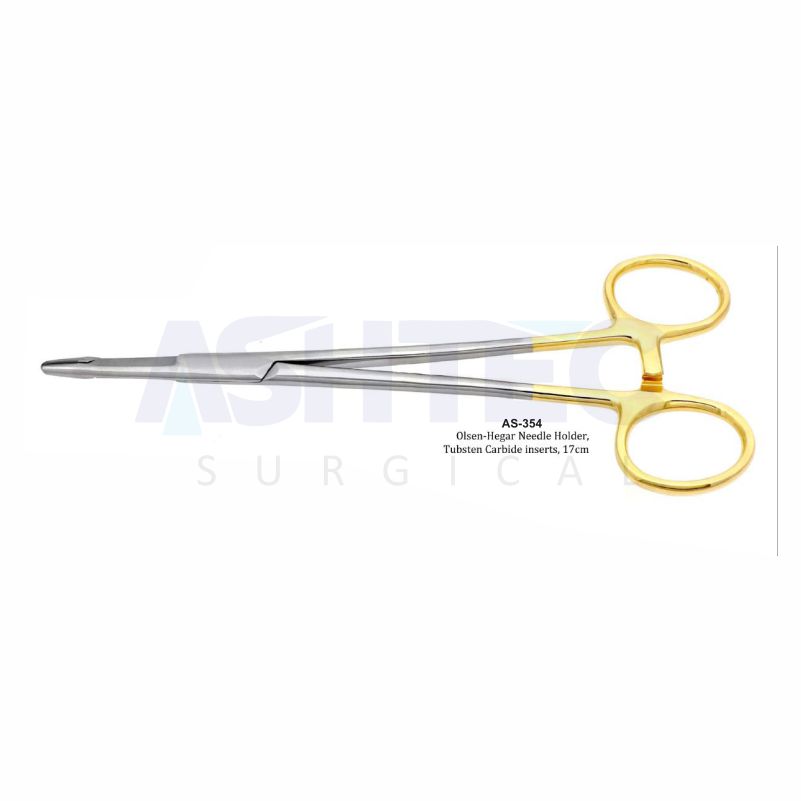 The Olsen-Hegar Needle Holder, 17cm is a versatile dual-function surgical instrument that combines the features of a needle holder and surgical scissors, making it highly efficient for suturing and cutting tasks without switching instruments. Its tungsten carbide (TC) inserts provide an exceptionally strong, non-slip grip on suture needles, preventing rotation or slippage, while the integrated scissors allow for precise cutting of sutures.