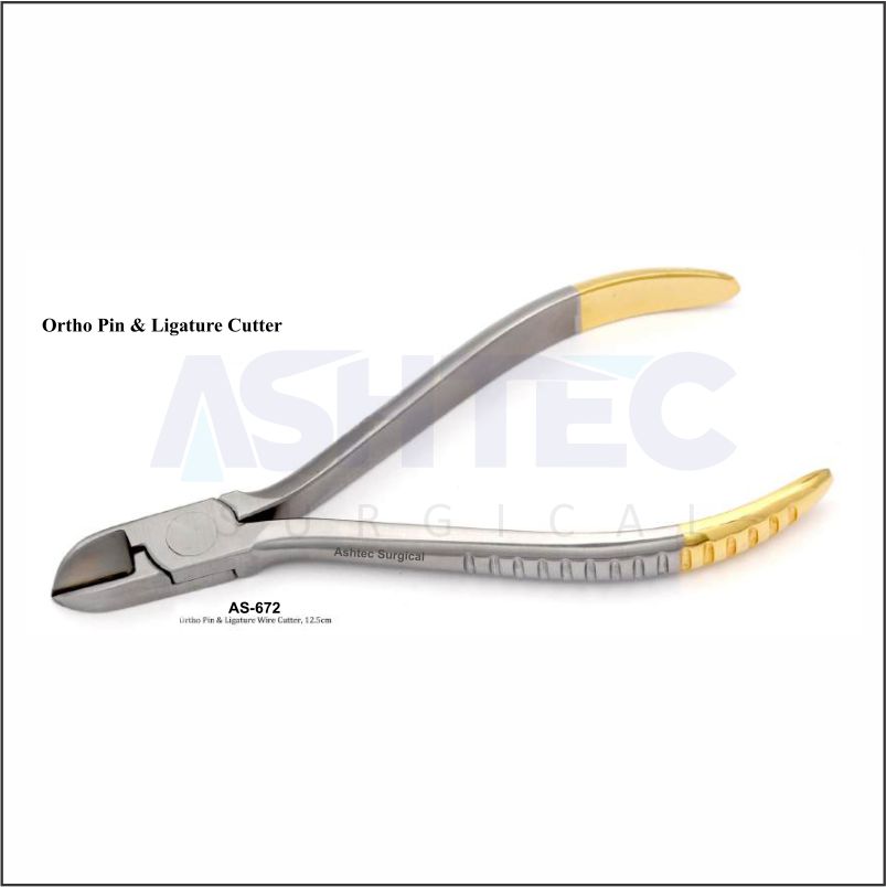 Ortho Pin & Ligature Cutter, 12.5 cm is a precision orthodontic instrument designed for the accurate cutting of soft ligature wires, elastomeric ties, and pins. The sharp, precision-aligned cutting edges deliver smooth, clean cuts without fraying or bending, ensuring efficient and safe wire management during orthodontic procedures.