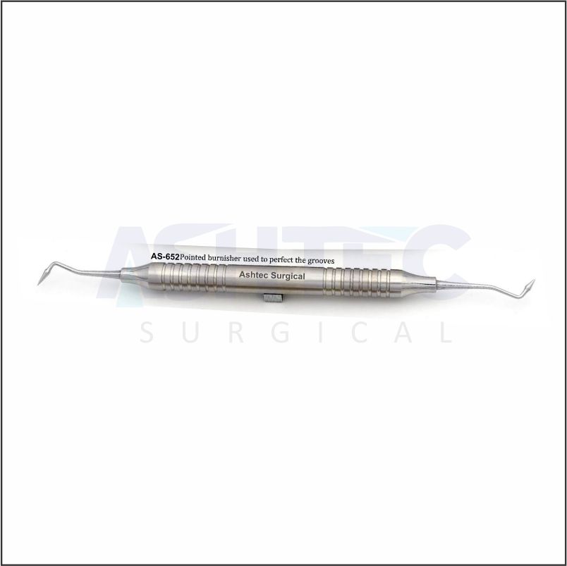 Pointed Burnisher – Groove Refiner is a precision restorative instrument designed to perfect and accentuate occlusal grooves in amalgam or composite restorations. Featuring a fine pointed working tip, it allows detailed contouring of pits, fissures, and grooves, helping reproduce natural anatomical patterns.