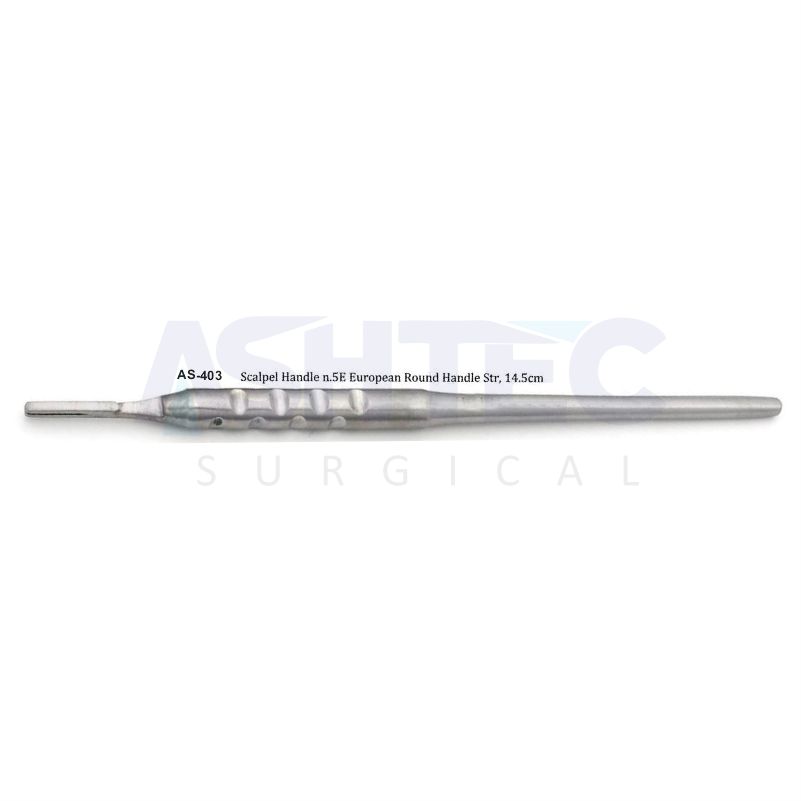 Scalpel Handle No. 5E, European round straight design, 14.5cm, ensures secure grip and accurate control for precise surgical blade use.