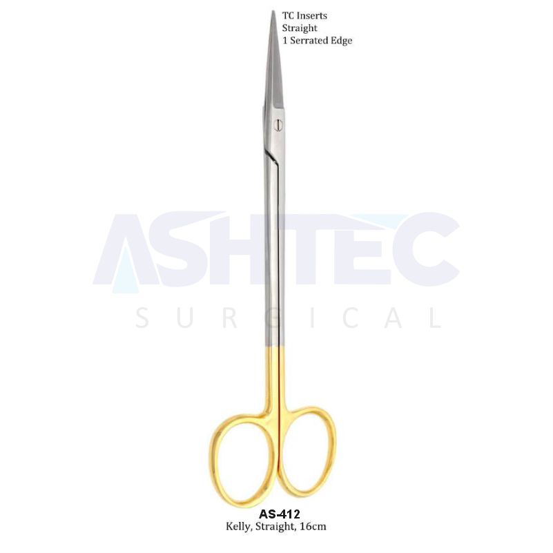 The TC Kelly Scissors are durable and versatile instruments designed for cutting tissues, sutures, and surgical materials across a wide range of medical procedures. This straight-blade model, with an overall length of 16cm, provides excellent precision and control, making it suitable for both surface-level and general surgical use.